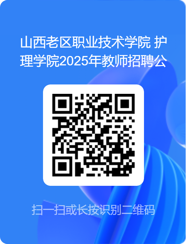 应聘人员请扫二维码填报《山西老区职业技术学院 护理学院2025年教师招聘公告》进行报名,如实完整填写相关信息。