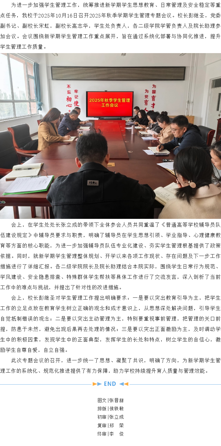 强化学生管理效能 推进育人工作高质量发展——我校召开学生管理工作会议