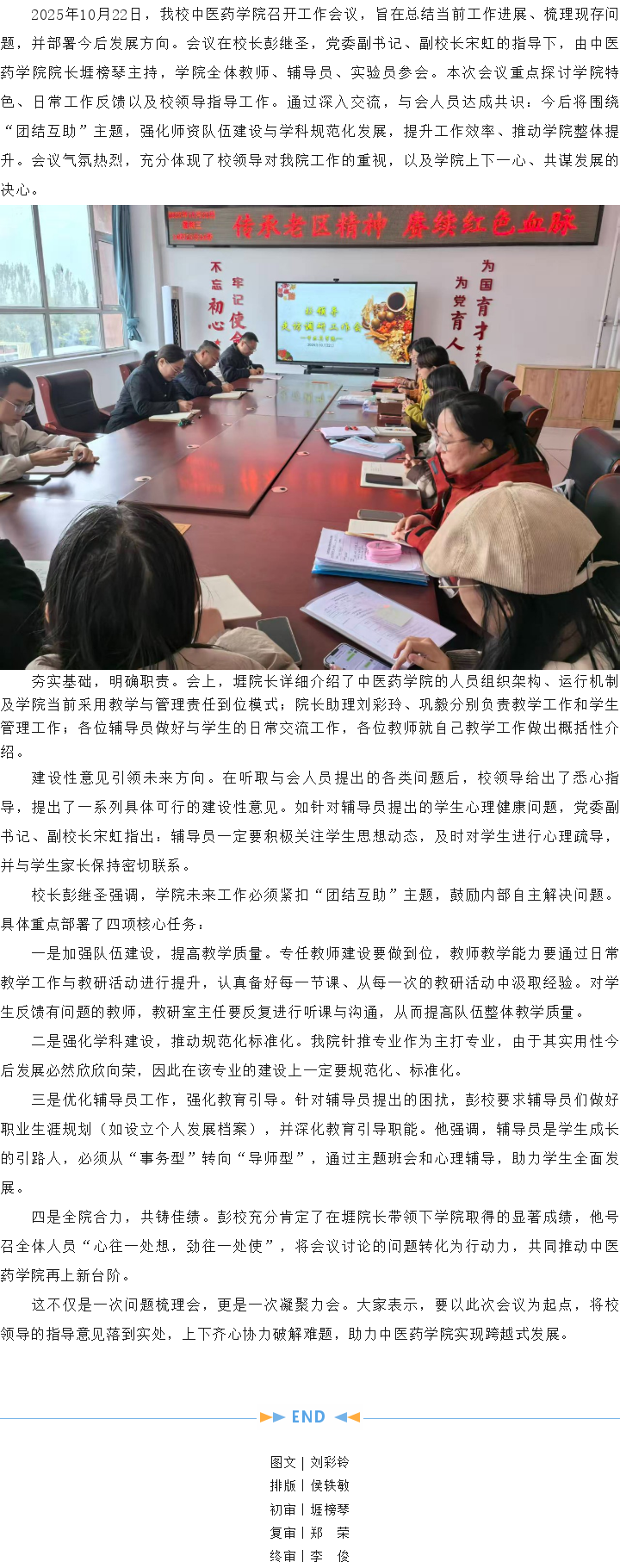 调研发掘工作问题 指导提升教学质量——校领导走访中医药学院开展调研工作会