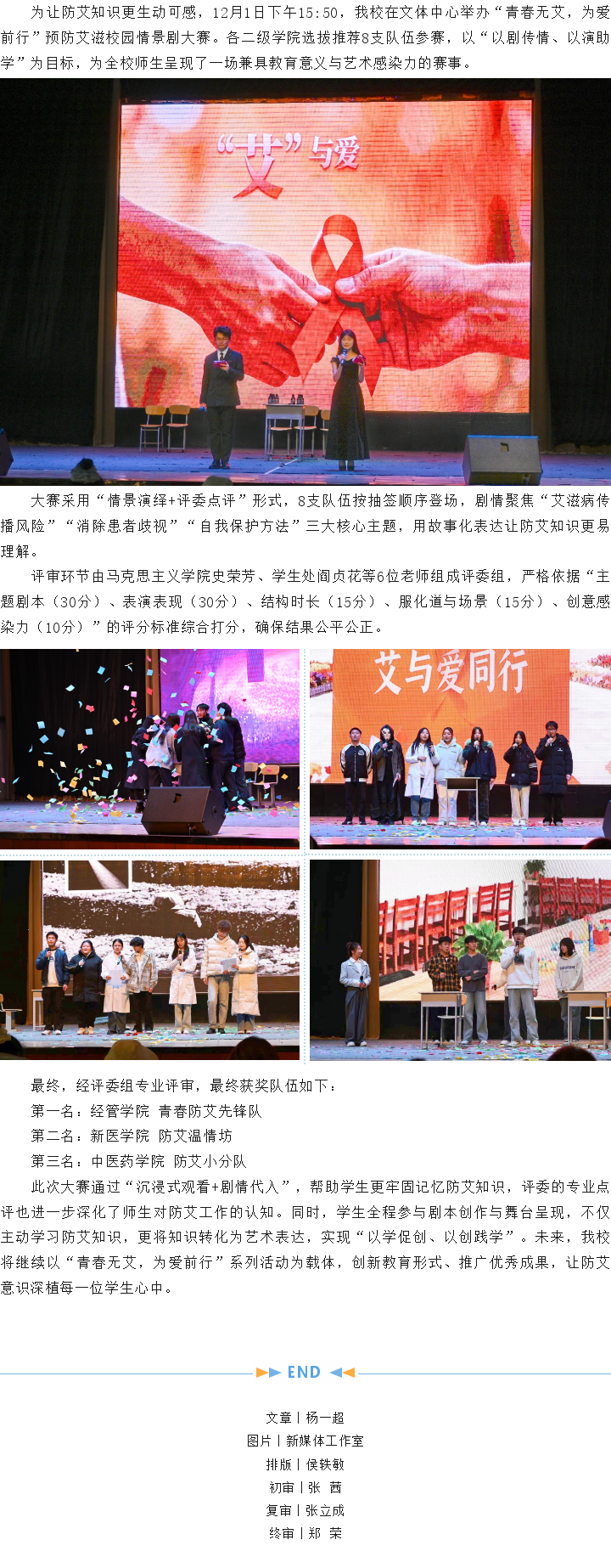 舞台演绎防艾路,青春聚力护安康 ——“青春无艾,为爱前行” 预防艾滋校园情景剧大赛精彩收官