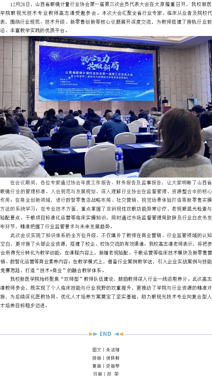 沐行业新风 育视光良师——我校新医学院教师代表参加山西省眼镜计量行业协会年会