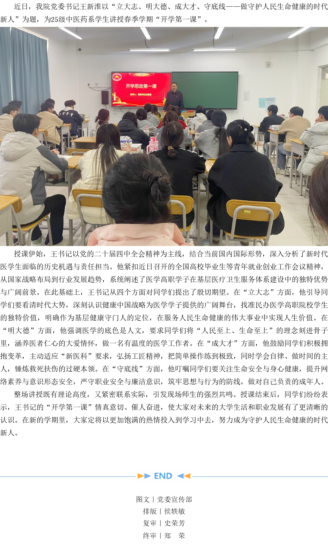 山西老区职业技术学院党委书记王新淮讲授“开学第一课”
