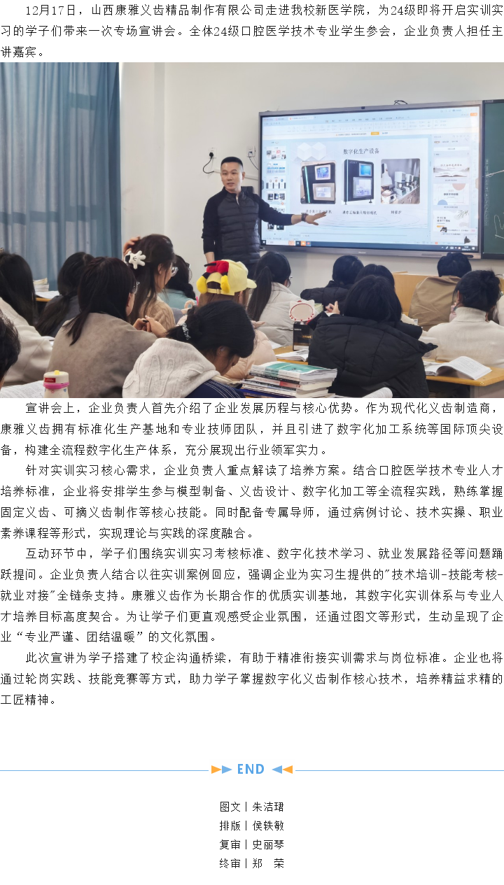 康雅宣讲传技能 实训实习备新篇——康雅义齿走进我校新医学院开展实训实习宣讲