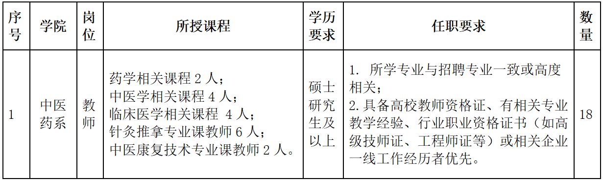 山西老区职业技术学院 2026年中医药系教师招聘公告