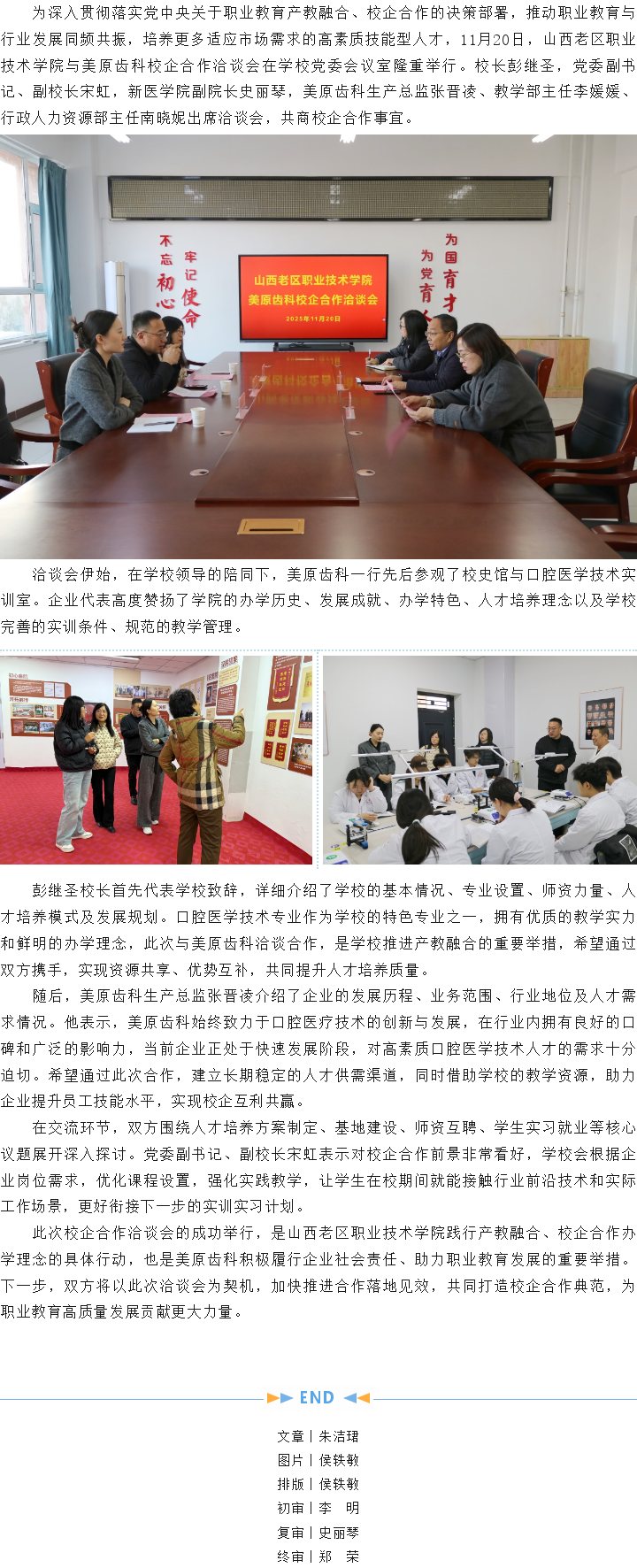 深化校企合作 共育技能人才——山西老区职业技术学院与美原齿科洽谈合作事宜
